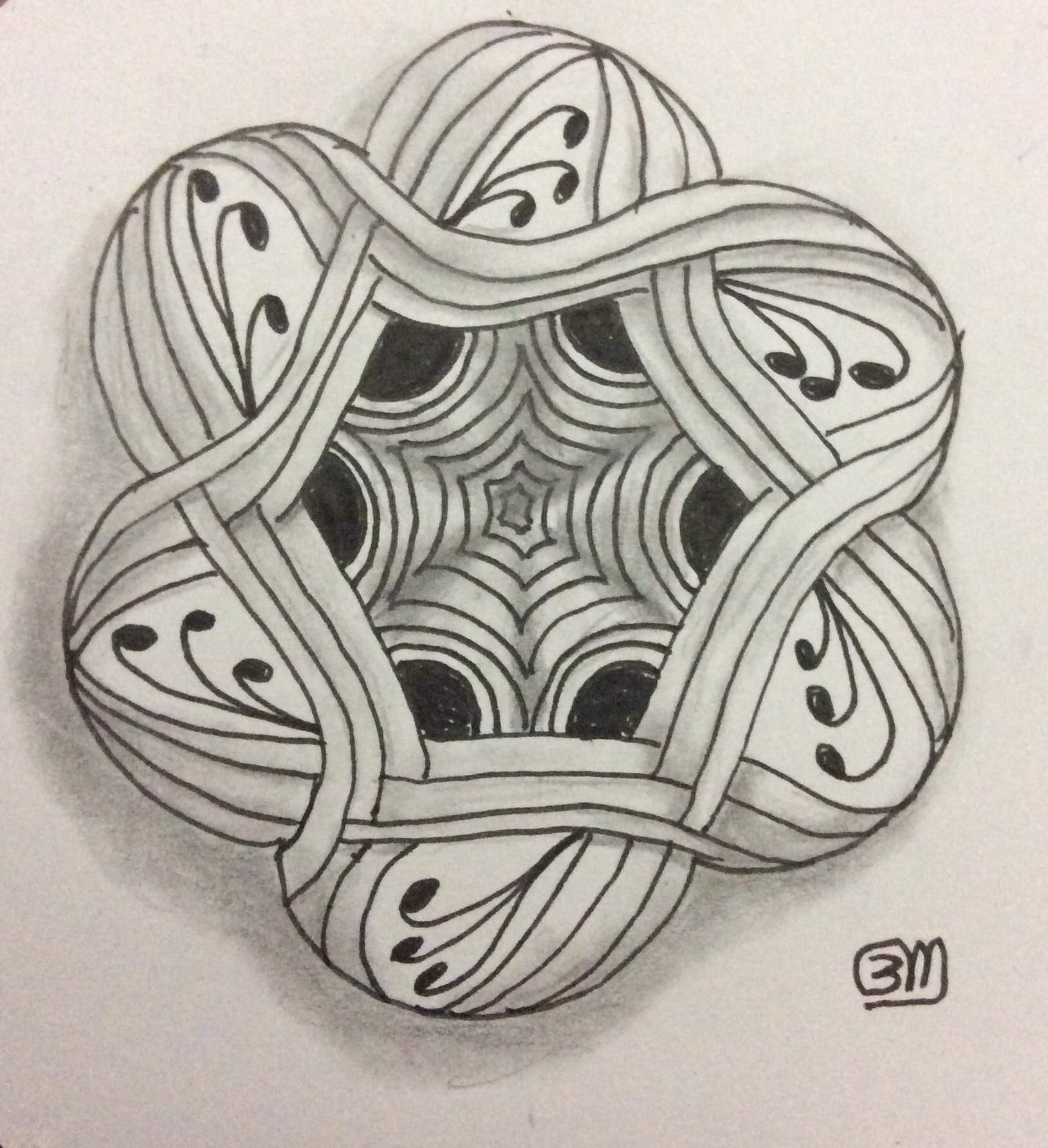 Today, I spent a lot of time waiting for people to show up–propane delivery, air conditioning repair person… Propane didn’t show, and bad news from the A/C man. But lots of time to calm down with Zentangling.